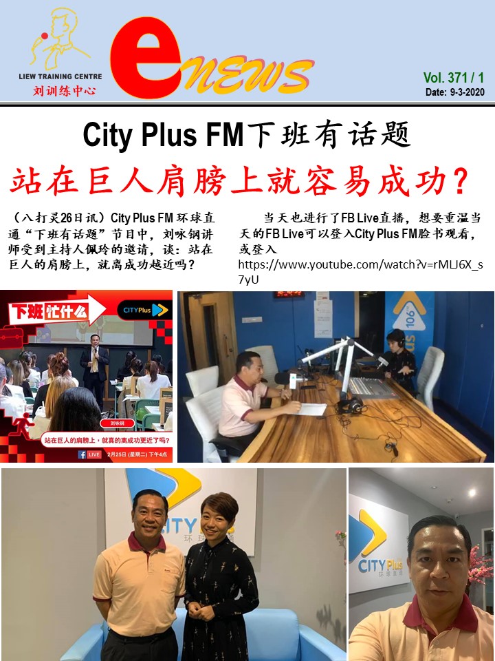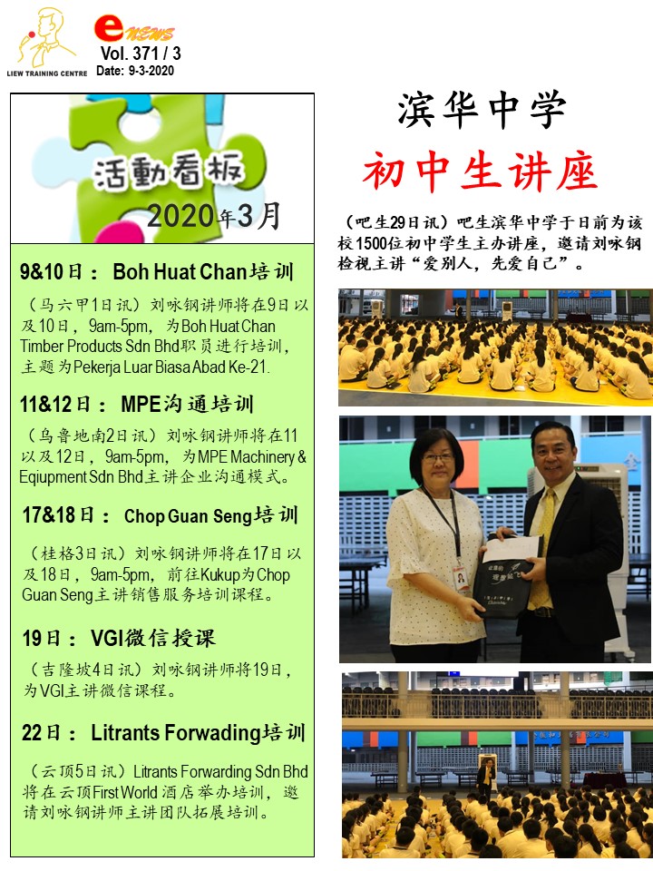 马来西亚激励讲师 – 刘咏钢硕士 » e NEWS Vol 371