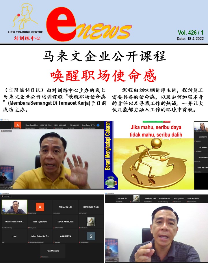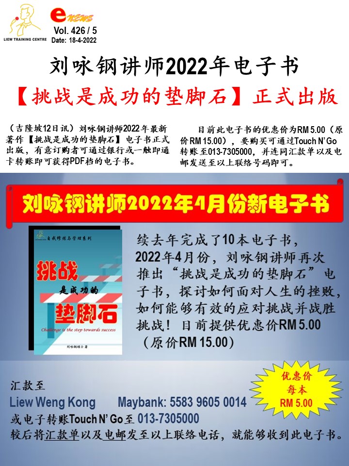 马来西亚激励讲师 – 刘咏钢硕士 » e NEWS Vol 426
