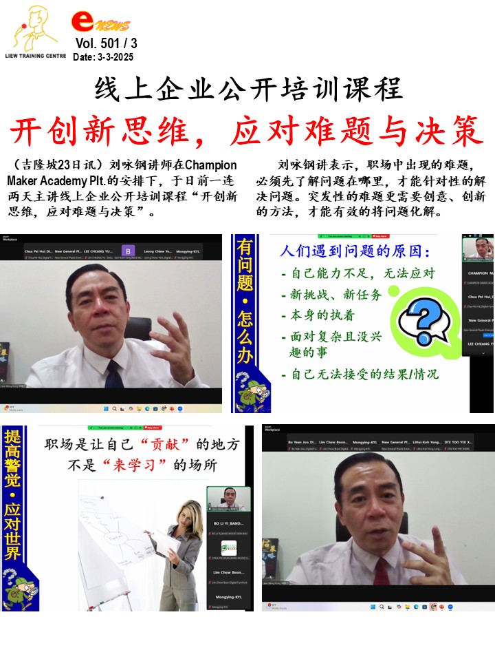 马来西亚激励讲师 – 刘咏钢硕士 » e NEWS Vol 501