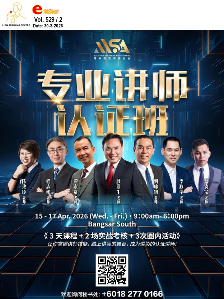 马来西亚激励讲师 – 刘咏钢硕士 » e NEWS Vol 529